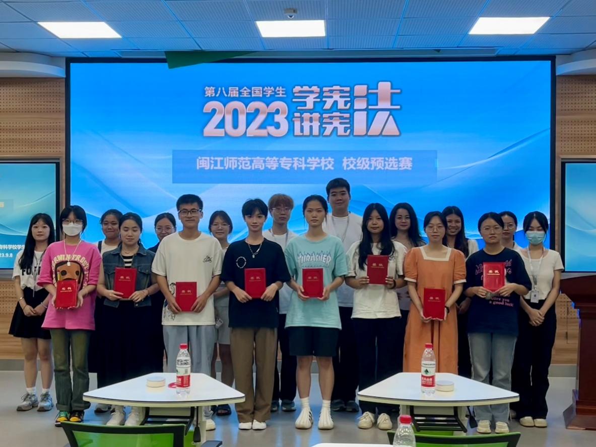 经过激烈角逐,数信学院梁家豪同学荣获宪法素养竞赛一等奖,学前教育学院胡文蔷同学、小学教育学院王依婷同学、化学与生物技术学院王玉荣获二等奖;外语商贸学院杨婷同学、人文与管理学院章祎骞同学、智能制造学院邓炳华同学、艺术学院林可烨同学荣获三等奖。