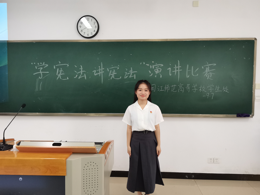 最终,人文与管理学院杨思涵同学荣获宪法演讲比赛一等奖,学前教育学院陈方婷同学、小学教育学院黄玉滢同学、医护学院李晶晶同学荣获二等奖,外语商贸学院周楚凝同学、艺术学院林钰琪同学、智能制造学院张琦同学荣获三等奖。