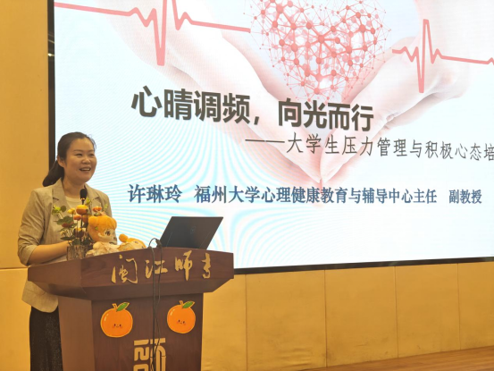 福州大学许琳玲副教授作《大学生压力管理与积极心态培育》讲座,分析了大学生的压力源并向心委传授了心理调节技巧。