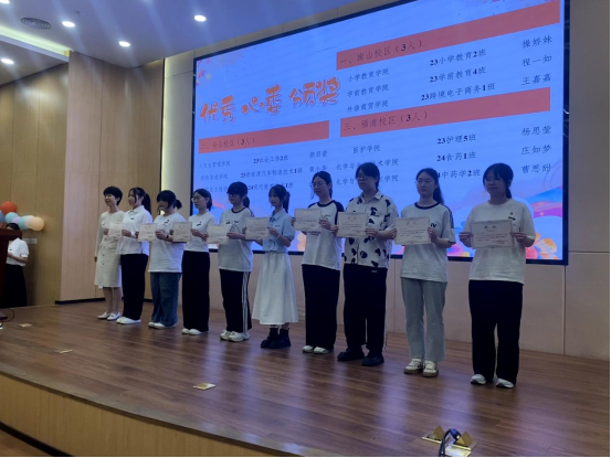 表彰环节中,学生处处长郭静静为三校区优秀心理委员的代表颁发了优秀心理委员奖状,肯定了其在班级心理建设中的积极作用。优秀心理委员代表分享了考试焦虑应对策略、人际沟通技巧等经验。学院心理负责老师分享了学院二级心理工作站建设的经验。