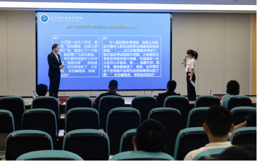 决赛分为班情熟知、案例研讨、谈心谈话三个环节。分别通过考察辅导员对所带学生的了解与熟知程度、围绕辅导员主要工作职责设置案例题目互问互答、还原日常工作中师生面对面谈话的场景帮助学生解决困惑几方面内容,综合考验参赛辅导员的能力素养和临场表现。