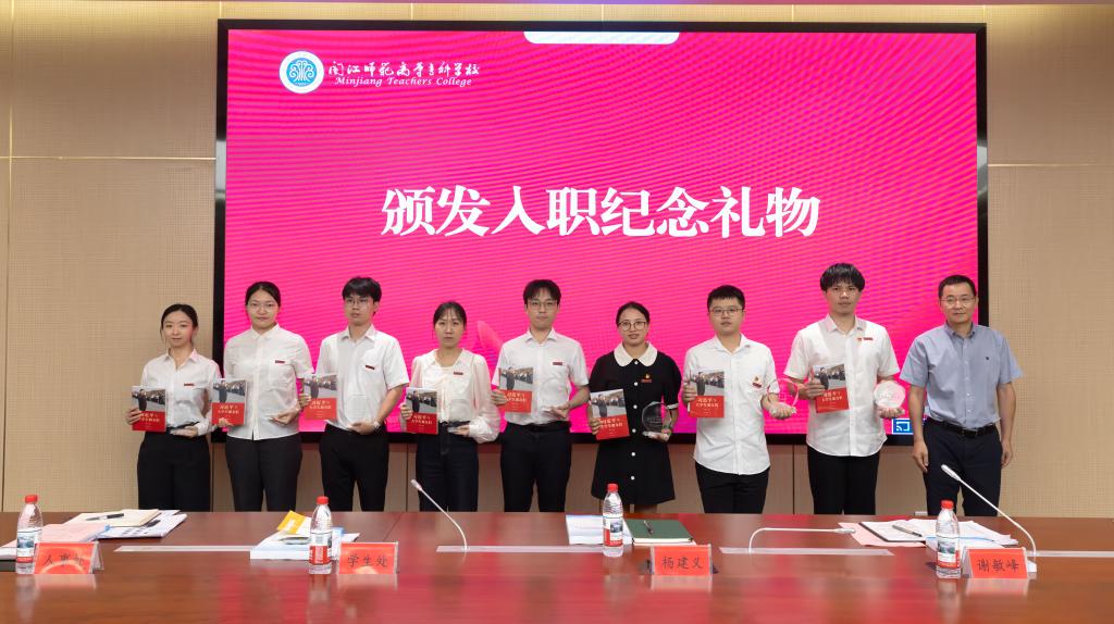 谢敏峰代表学校对加入闽江师专学工大家庭的新同志表示欢迎和祝贺。他指出,辅导员队伍是学校落实“立德树人”根本任务的重要力量,需强化思政引领力,筑牢青年理想信念之基;深化情感联结力,构建师生信任的共同体;提升专业服务力,破解学生成长多元需求;锤炼师德示范力,树立育人楷模的新形象。他勉励新辅导员以高尚师德和专业化能力成为学生成长的“人生导师”,在创建具有闽师专特色的温暖集体中书写新时代育人篇章。