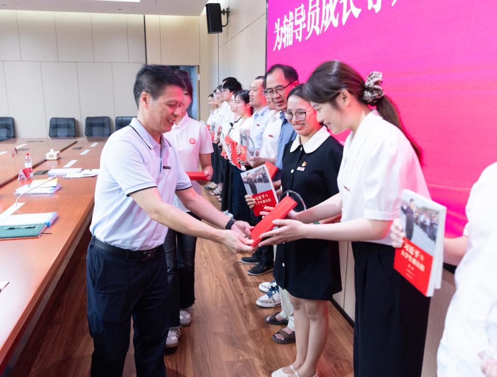 座谈会上,杨建义校长向辅导员成长导师颁发聘书。谢敏峰副书记为新任辅导员颁发入职纪念礼物及书籍。