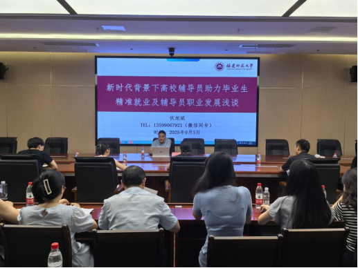 9月3日,福建师范大学物理与能源学院团委书记、副教授伏旭斌围绕“新时代背景下高校辅导员助力毕业生精准就业及职业发展”作专题报告。他系统分析了当前就业工作面临的新形势、新挑战,并分享了一系列推动毕业生高质量就业的有效做法与实践经验,近两年新任辅导员和毕业班辅导员参与学习。
