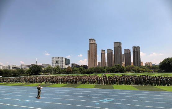 立正、稍息,受阅方队迅速准确,协调一致,以标准动作诠释纪律如铁的军人品格。随着教官洪亮的口令,会操队伍以精准的停止间转法完成动作,目光如炬,凝视前方,用整齐划一的队列勾勒出青春最挺拔的脊梁。