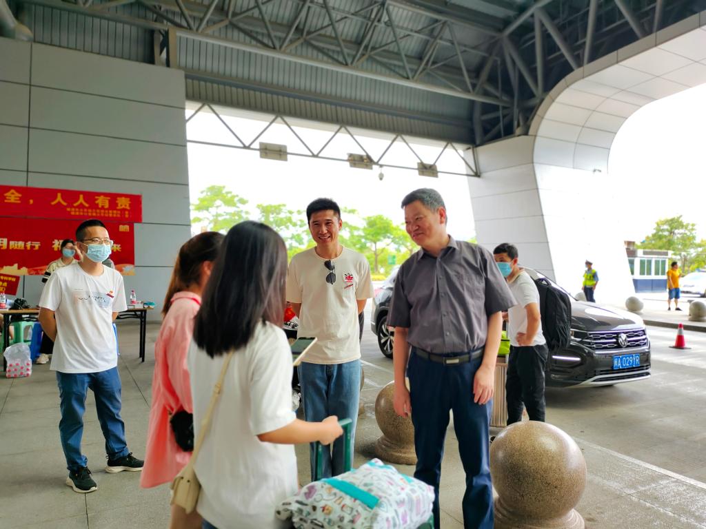 迎新当日,志愿者们分别在福州火车南站、火车北站、汽车北站、福清动车站、三角埕地铁口、蕫屿地铁口等地迎接新生。校党委陈荣生书记亲自来到福清校区站点了解迎新工作开展情况,并对新同学们的到来表示热烈欢迎。