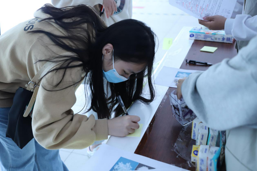 本次活动将宣传毒品知识作为主要内容,以线上与线下相结合的形式开展。师生们踊跃参加,纷纷在线上发表禁毒宣言,表明禁毒决心的同时也起到宣传倡议的作用;活动现场,人来人往,络绎不绝,大家陆续在便签上签名后贴于横幅上,接着选择看图答毒品名称或抽选回答有关毒品的题目,包含毒品历史、毒品种类、毒品颜色等毒品知识,同时禁毒志愿者们也向同学们补充、科普禁毒知识,相互交流,现场氛围热闹融洽。举办方通过有奖竞答的鼓励方式,激发同学们参与活动的积极性,增强了禁毒知识的普及性。