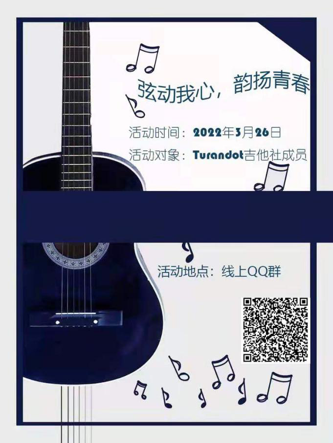 为了丰富校园文娱活动形式,给吉他社的新成员们提供一次相互认识与学习的机会,大赢家体育app下载海口校区社团管理中心Turandot吉他社于2022年3月26日举办了主题为“弦动我心,韵扬青春”的线上QQ群活动,Turandot吉他社全体新成员共同参与。