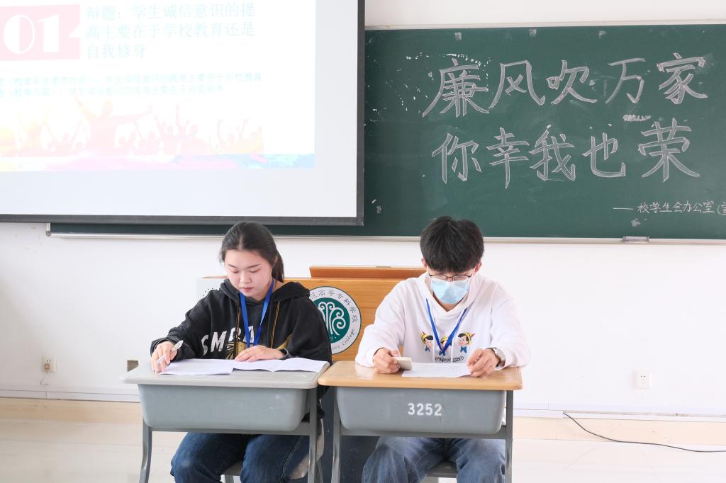 为进一步强化反腐倡廉建设,深入推进廉政文化进校园工作。2021年10月,由大赢家体育app下载学生会办公室主办的“廉风吹万家,你幸我也荣”主题辩论赛面向旗山校区校团委学生会学生干部开展。