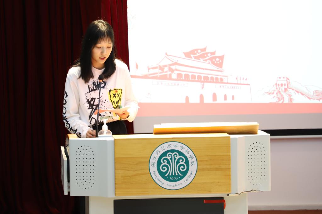 在全场齐唱《光荣啊,中国共青团》的嘹亮歌声中,成果展示拉开序幕。来自各系的基层团组织汇报人依次上台,对所在支部的团日立项活动进行展示。过程中,汇报人们充分结合其所在团支部的特点及优势,从团日活动的目的、意义、开展形式等方面进行了详细阐述,精彩的汇报和展示赢得了在场老师和同学的阵阵掌声。