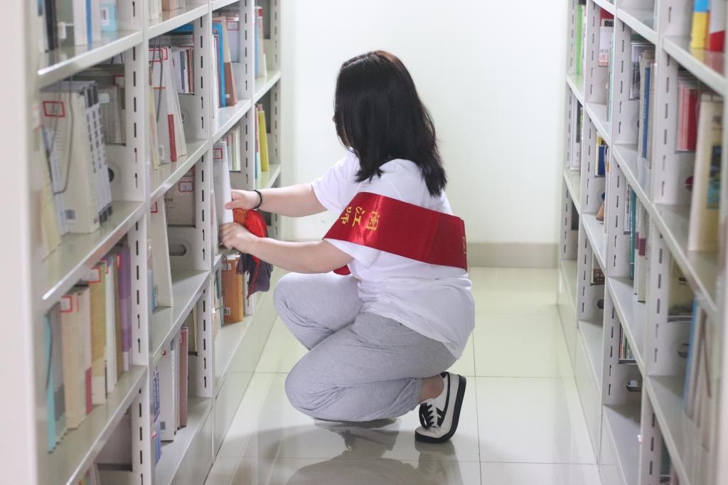 活动开始,青年志愿者协会工作人员组织到场志愿者集合,与志愿者说明工作要点,强调活动注意事项。志愿者进入图书馆二楼,分工打扫不同的区域,他们拿着抹布擦拭书架,有的负责擦拭桌子和椅子,有的擦架子上的书,分工合作,共同努力,携劳动之光,创美好书坊。