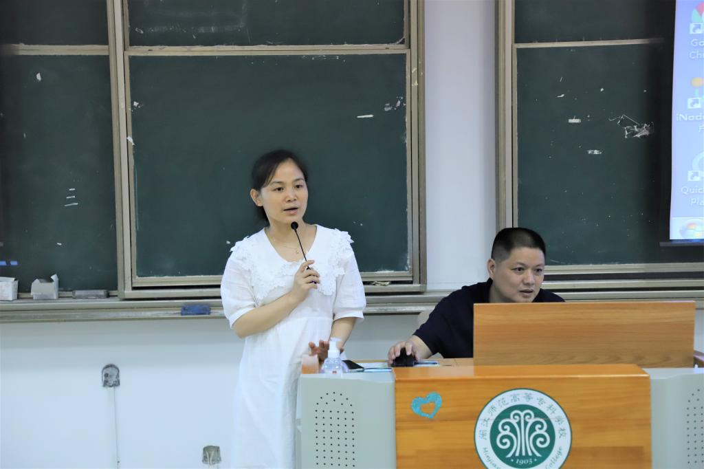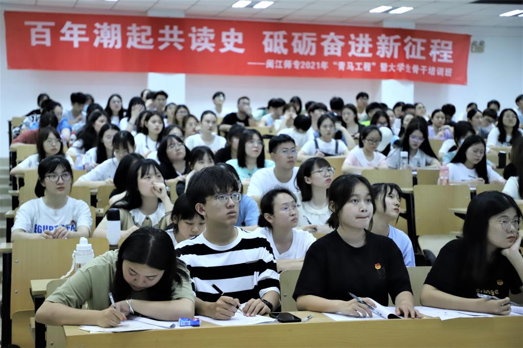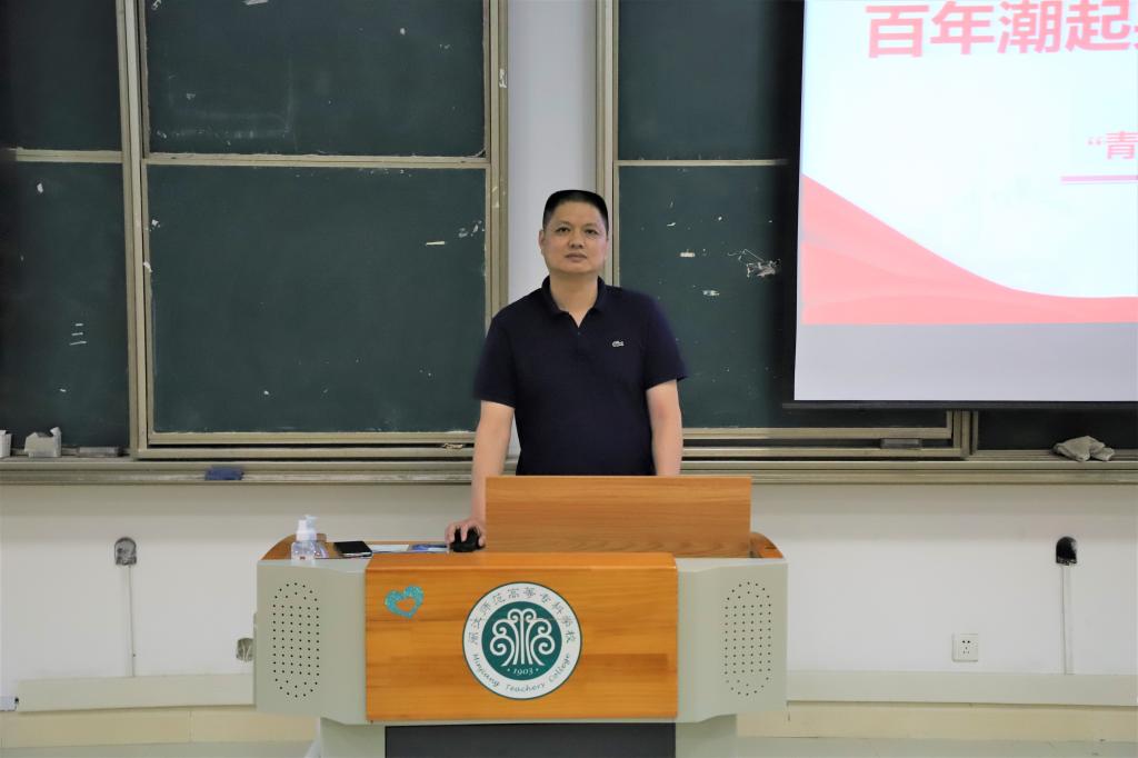 最后,校团委廖素梅老师为广大青年学生提出三点要求:一是爱党爱国,学史知史,筑牢信仰之基、补足精神之钙、把稳思想之舵;二是胸怀国家民族,恪尽职守,勇于担当,不负青春,不负韶华,为伟大的祖国和人民而骄傲,为自强不息的民族精神而自豪。三是铭记历史,发扬红色传统,传承红色基因,赓续共产党人的精神血脉,传承自强不息的民族精神,从百年党史中鉴得失、知未来、长本领。