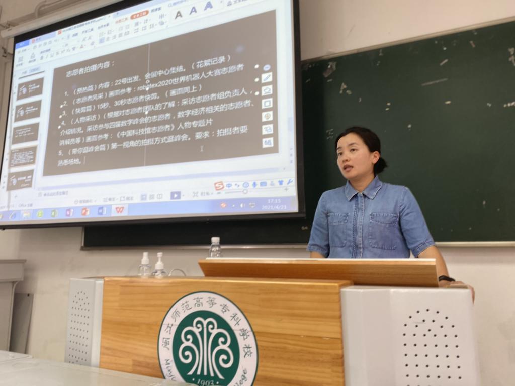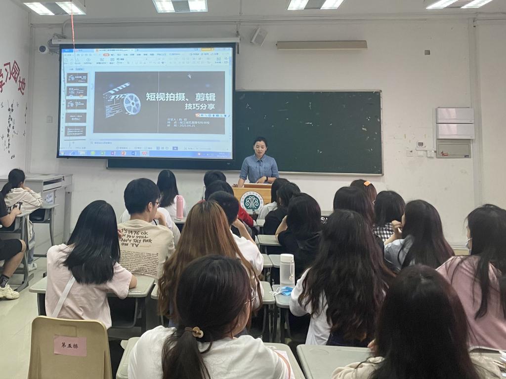 培训伊始,同学们有序上台进行自我展示,现场气氛十分活跃,促进了同学们之间的交流。然后,陈钰老师讲解了摄影摄像构图六要素,普及了摄影的理论知识,增加了同学们的知识储备。她用剪辑的视频进行实例分析,指出小鹿仔融媒体中心抖音、公众号上视频作品拍摄中存在的问题,并提出相应的改进措施;用自己拍的视频作为实证分析,传授关于拍摄的小技巧,提高了同学们的思想水平。最后,陈钰老师为即将到来的数字峰会进行志愿者拍摄指导,使同学们的志愿服务思路更加清晰,增加了同学们的信心与勇气。
