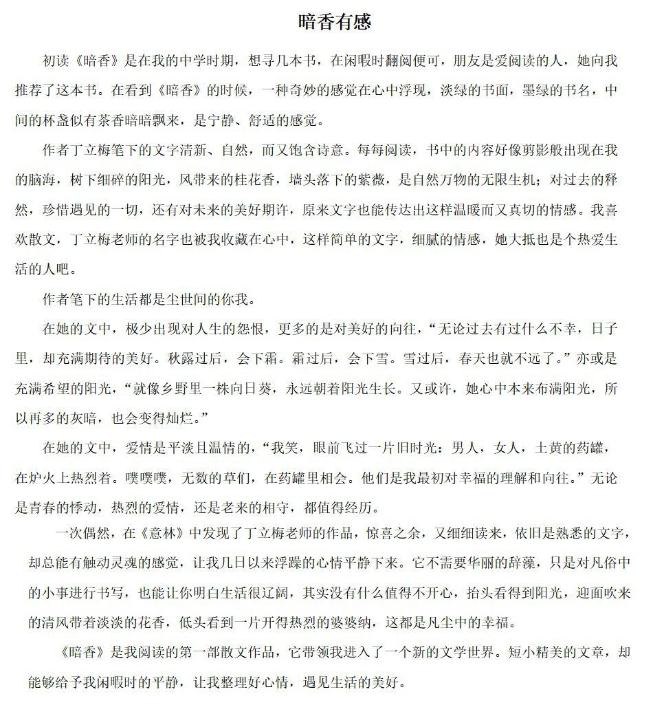 总而言之,读一本好的书有百利而无一害,而能领悟出其中涵义,并能从中汲取到有用的知识,那更是锦上添花。读书如树木,不可求骤长。希望同学们能再接再厉,在书籍的世界里尽情的遨游。