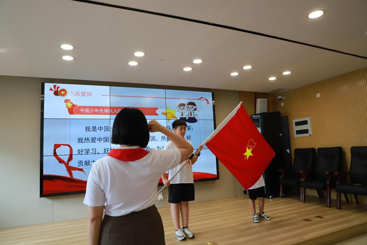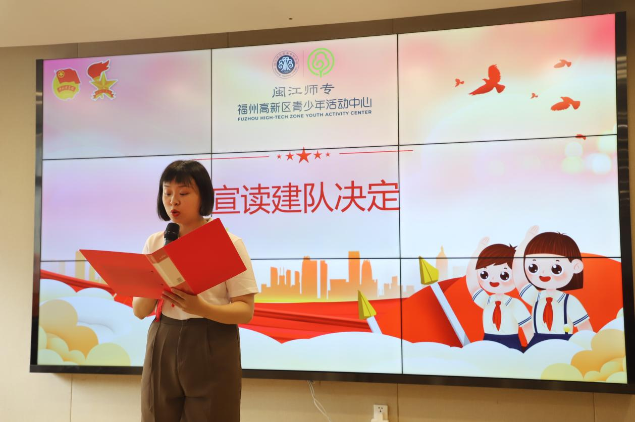 仪式开始,全体营员高声齐唱中国少年先锋队队歌。闽江师专附小大队辅导员李敏老师首先宣读关于“闽秀少年”临时中队的决定,闽江师专附属小学少工委主任江鸿校长为中队授旗。接着,全体队员面向队旗,重温入队誓词并齐声呼号。随后,江鸿校长表达了对营员们的殷切期望,希望大家能增强爱国爱党情怀,在活动中保持好奇心,积极探索,提高自己的思辨能力和动手能力,通过此次夏令营收获快乐,增长知识。