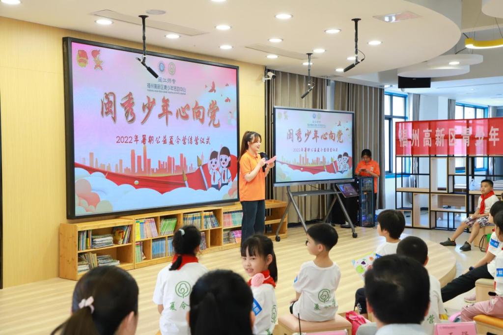 2022年7月8日,由福州高新区青少年活动中心主办的“闽秀少年心向党”暑假公益夏令营圆满结束。热闹隆重的结营仪式在中心五楼ELE绘本馆举行,闽江师专、福州高新区青少年活动中心、闽江师专附属实验小学、省教育厅等单位的领导和工作人员出席结营仪式。
