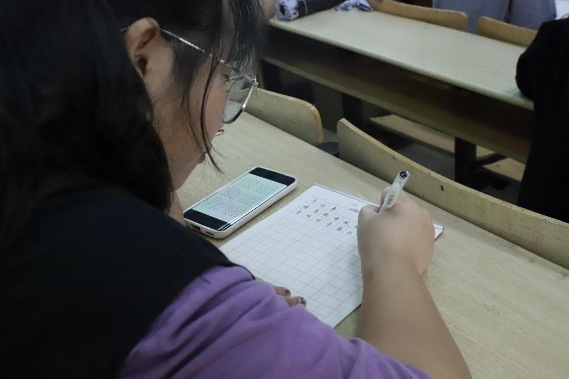 活动伊始,工作人员组织现场进行了硬笔书法创作,同学们全身心投入,一笔一划,感受诗文的无穷魅力。接着,工作人员为同学们播放《100秒党史回顾》片段,一段段红色经典故事,记载着辉煌,镌刻着历史,同学们聚精会神地观看,深入学习革命历史,传承红色基因。最后,同学们参与党史知识竞答环节,踊跃抢答,展现出同学们扎实的历史文化基础知识和“请党放心,强国有我”的信念与信仰。