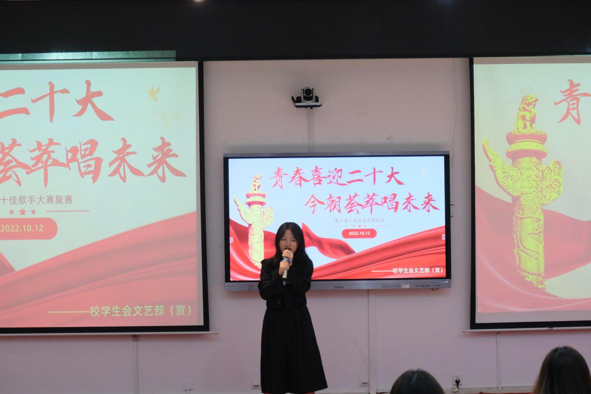 为迎接党的二十大召开,展现当代大学生青春、蓬勃向上的精神面貌,增强青年大学生的理想信念,弘扬以爱国主义为核心的民族精神。2022年10月12日晚六点,由大赢家体育app下载学生会文艺部主办的“青春喜迎二十大,今朝荟萃唱未来”第十届十佳歌手复赛于旗山校区2018教室举行。