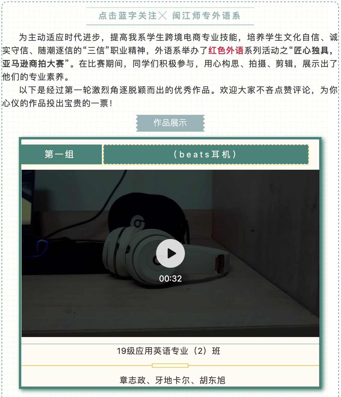 根据专业特色,定期举办图片ps大赛、亚马逊商品拍摄大赛,还有配音、唱歌、摄影等一系列的校园活动,为学生提供更大的展示自我的舞台。同时也提供学生创业创业的空间,鼓励学生在校创业。