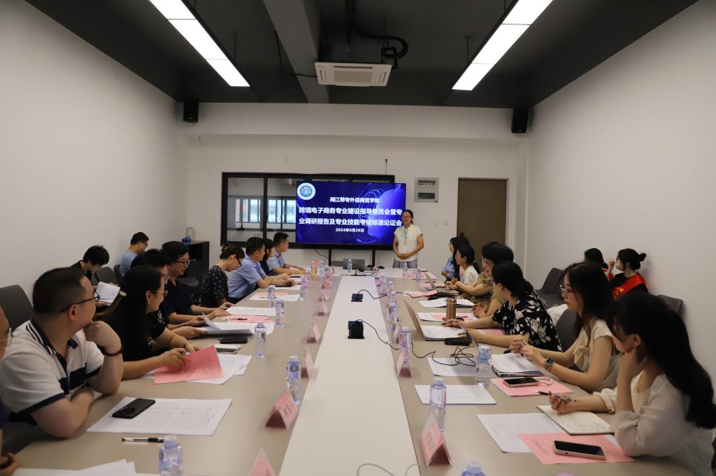 为精准把握人才市场需求动态,锚定专业人才培养方向,外语商贸学院跨境电子商务专业于2024年6月26日在产创楼现代商贸实训中心303会议室,召开2024年专业建设指导委员会暨专业调研报告、专业技能考核标准论证会。