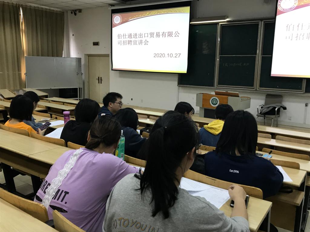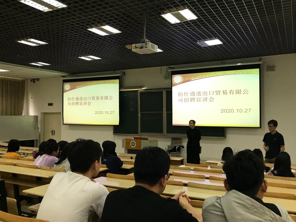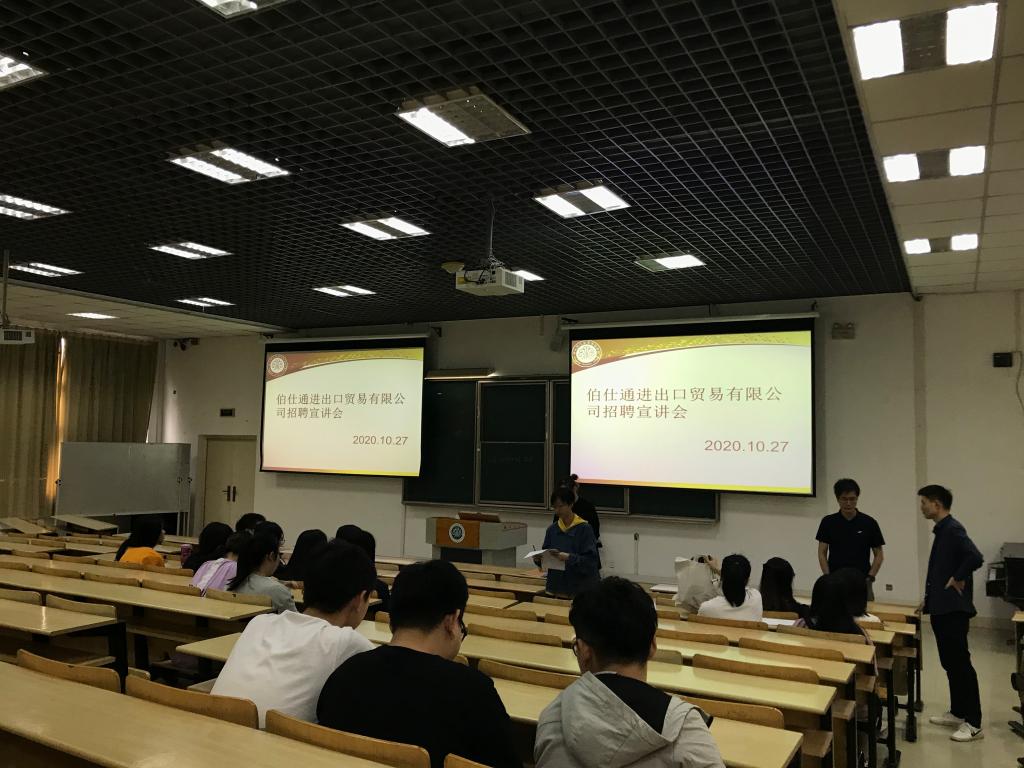 10月27日下午,福州伯仕通进出口贸易有限公司在2018教室召开了企业应聘宣讲会,应用外语专业18级马来语、柬埔寨语方向学生以及教研室教师出席了会议。