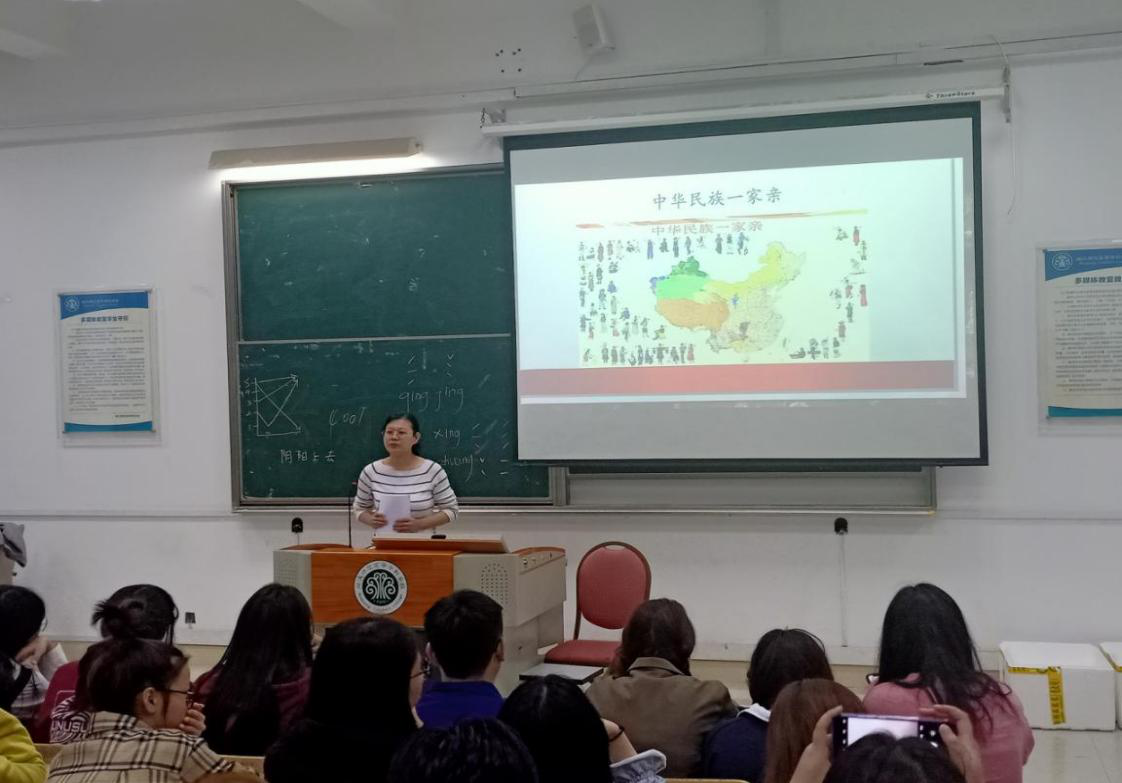 首先,老师们以“五十六个民族五十六朵花”导入主题教育。其次,结合我国56个民族分布图,阐述了我国各民族的分布特点及形成原因,进而根据我国是统一的多民族国家的实际,重点阐述了坚持民族平等、民族团结和各民族共同繁荣的基本原则,并理论联系实际,引导学生们充分认识到民族团结的重大意义。然后,深入学习习近平总书记关于民族团结和国家安全的重要论述,提高学生们的思想站位,着力从现在做起、从小事做事,从而自觉承担起维护民族团结和国家安全的责任。最后,引导学生们在深入学习党史、国史、改革开放史、社会主义发展史中深化爱国主义教育。