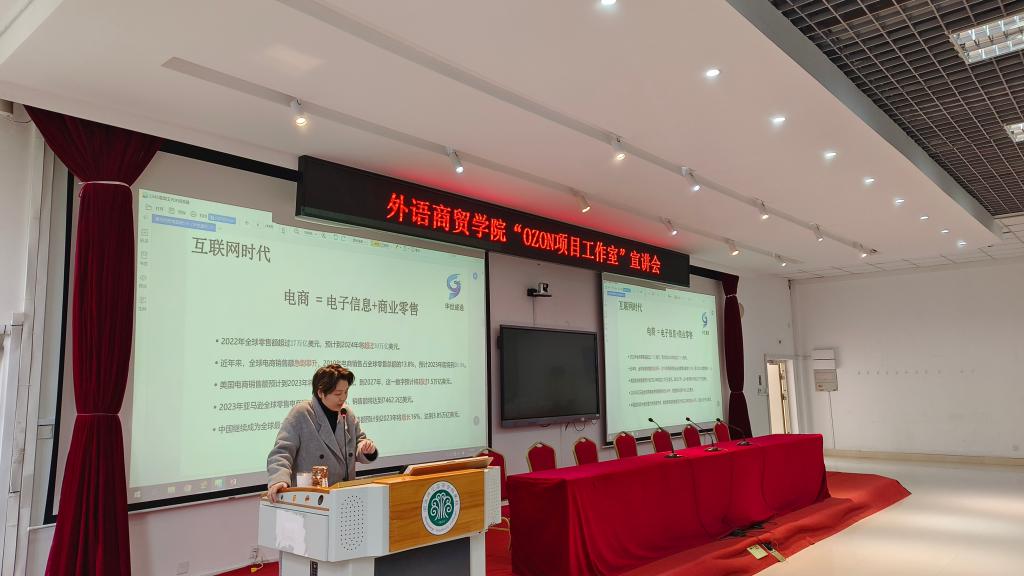 为进一步贴近跨境电子商务行业发展新趋势,探求产教融合新思路,助力学生与企业岗位无缝对接,2024年3月13日下午,外语商贸学院在旗山校区2018教室召开华世盛通“OZON项目工作室”宣讲会。外语商贸学院数智经济产创中心常务副主任刘小清、华世盛通创始人张琴、技术总监曹垒以及2022级跨境电商专业群全体同学参会。会议由产创中心秘书陈池、OZON项目班主任詹秀萍主持。