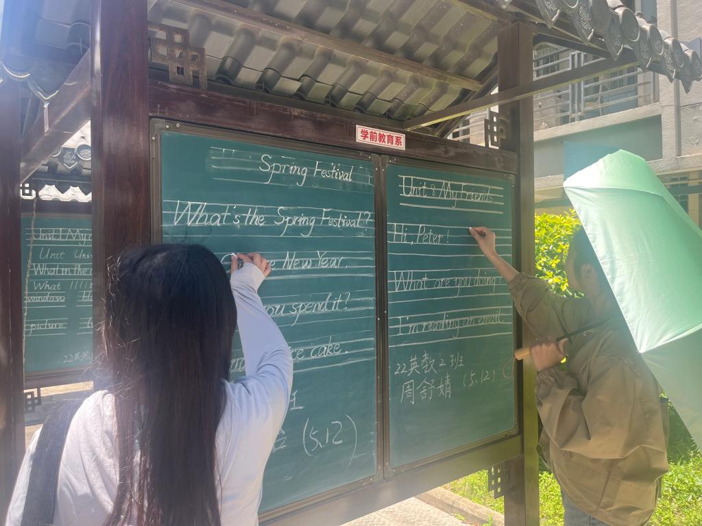 漂亮的板书是课堂教学中必不可少的环节,更是在教师招聘面试中能够脱颖而出的加分项。书写作为小学英语教师职业技能之一,是教师综合素质的重要体现。本次活动旨在加强小学英语教育专业学生的书写基本功。书写内容以小学英语课本为主,每一位参与书写的同学都积极认真地对待,写出自己的风采。