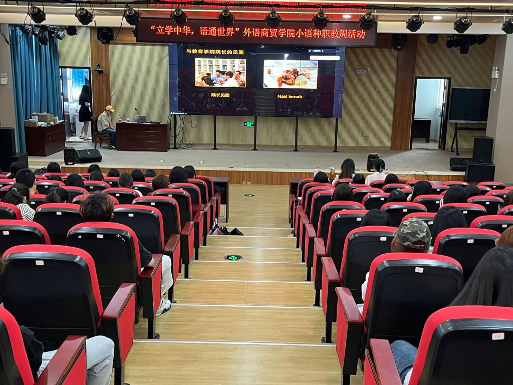 会上,21级应用外语(马来语)的陈婷同学分享自己参与马来亚大学交换生项目的经历,她从行前准备、出国后的困难挑战、多元文化的学习收获等方面阐述了自己的心得体会,鼓励同学们把握机会、挑战自我、开拓眼界。21级应用外语(柬埔寨语)的辛德民同学通过自己备战2024年专升本考试的亲身经历,和同学们分享备考策略,鼓励学弟学妹们做好准备。21级应用外语(马来语)的蔡佳慧同学分享自己参与永思校企合作工作室并通过企业考核进入正式实习的经历,她鼓励同学们在校阶段要珍惜学院提供的校企合作实习实训机会,敢于试错、勇于发现自己新的潜能。