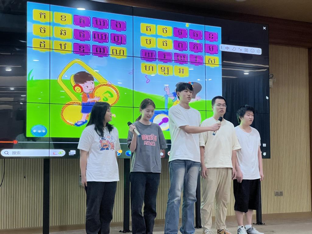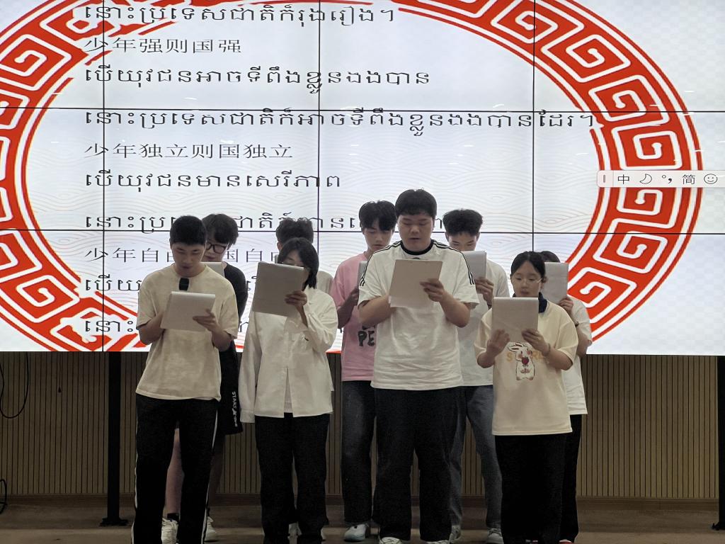 在本次活动中,同学们展现出高涨的热情,他们积极运用所学的语言知识,以展示和表演的形式呈现精彩纷呈的节目。两个班级携手合作,共同演唱了融合中文、马来语和柬埔寨语三语元素的合唱歌曲《情非得已》,展现出了跨文化交流的独特魅力;马来语班的同学们精心策划并呈现了马来语歌曲《你要的爱》和《Arena Cahaya》,让同学们领略到了马来语音乐的独特韵味,也进一步促进了同学们对马来文化的了解与认识;柬埔寨语班的同学们认真准备并深情朗诵了《中国少年说》,以激昂的语调展示了中国少年的风采。此外,他们还带来了辅音歌的精彩表演,通过这一形式,让同学们更加直观地感受到了高棉文字的魅力与特色。整场活动充满了浓厚的文化氛围和学术气息,不仅提升了同学们的语言能力,也增强了他们对多元文化的理解和尊重。