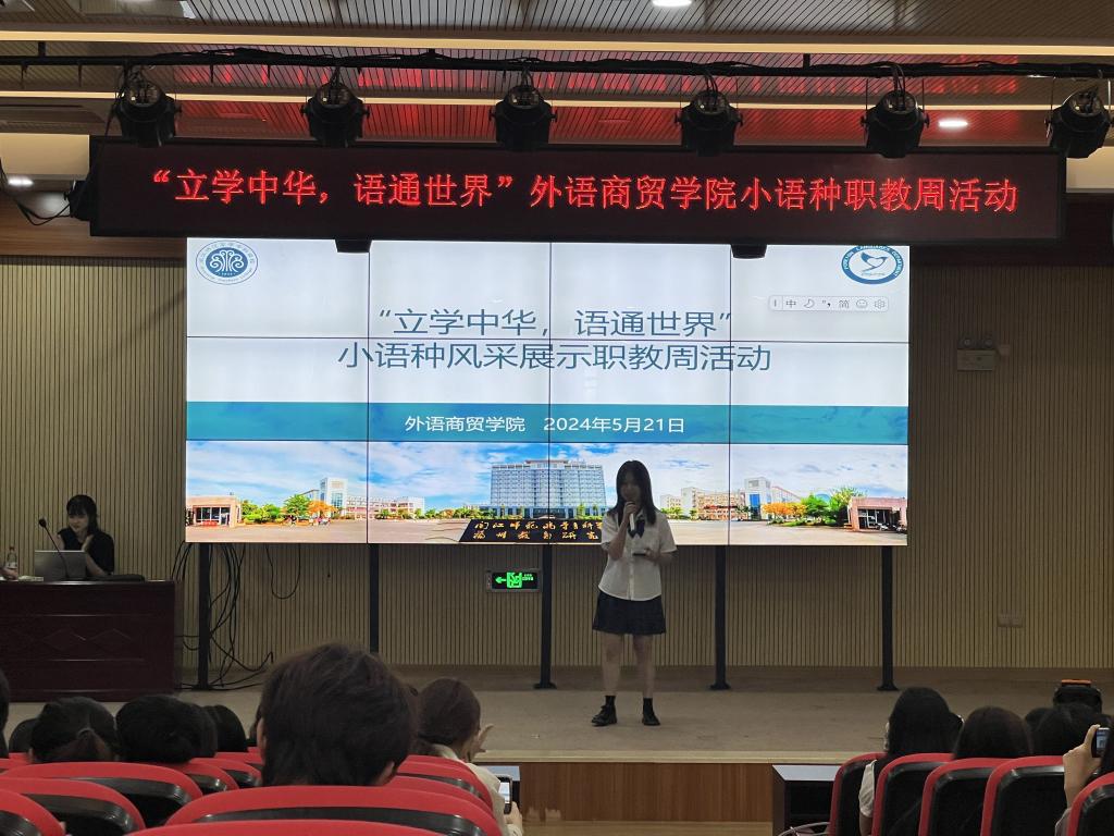 为提升应用外语(柬埔寨语)、应用外语(马来语)专业学生的专业技能,激发专业信心和学习热情,外语商贸学院应用外语教研室于2024年5月21日下午在福清校区信息楼四层会议室开展以“立学中华,语通世界”为主题的小语种职教周活动。应用外语教研室主任金曦、教师郑美玲、辅导员郑亦琅以及23级应用外语专业全体同学参与本次活动。