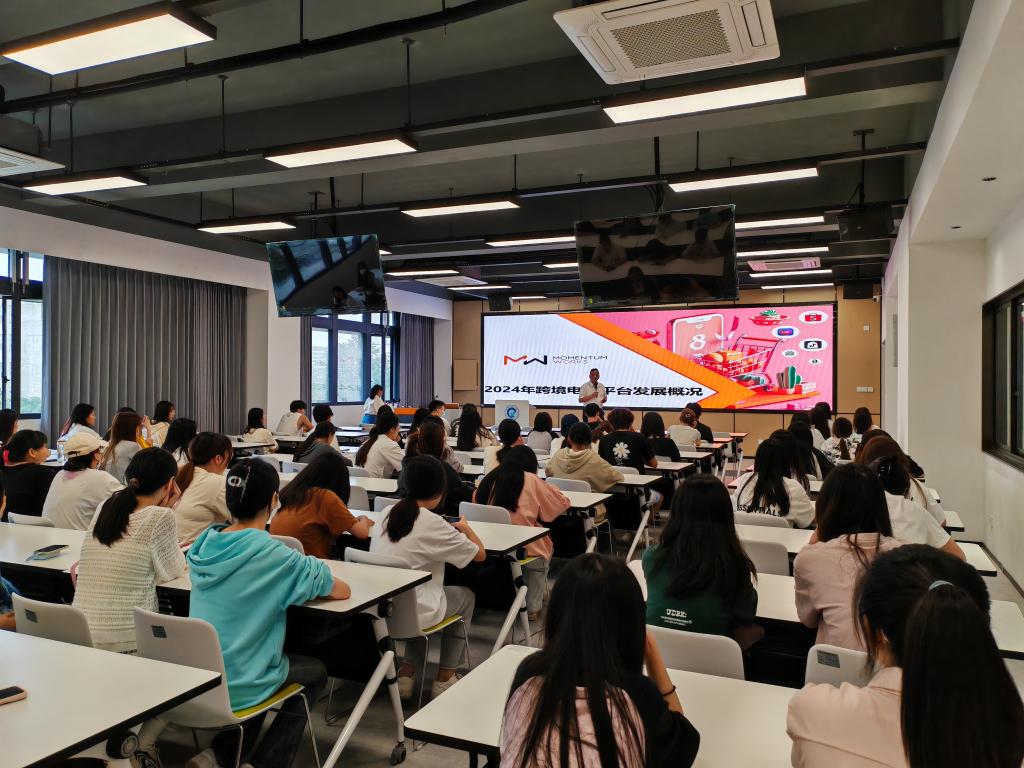 会上,刘小清副总裁从2024年跨境电商平台发展的现状出发,探讨了东南亚电商和海外抖音(Tiktok)平台的发展趋势,并预测了未来跨境电商发展行业的发展方向。同时,结合职业教育的特点, 鼓励在座同学打下坚实的专业基础,拓宽择业视野。在互动环节,同学们就跨境电商行业对人才的需求等问题与企业进行了互动交流,刘小清做出详尽的解答并对职业方向较为迷茫的同学进行了鼓励,希望同学们都能找到实现自我价值的目标。