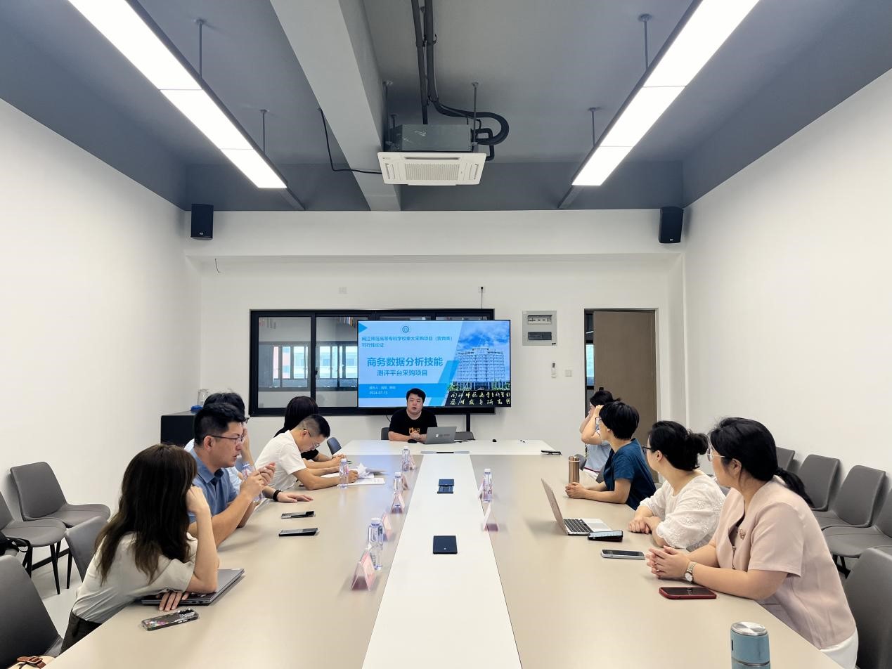7月15日上午,外语商贸学院于产创楼303室召开采购商务数据分析技能测评平台、直播营销一体化实训软件方案的可行性论证会,旨在为学院的教学与实践提供更先进、高效的技术支持。会议邀请闽江师范高等专科专科学校数字信息工程学院院长朱发财、教务处实训科科长欧晓钟、福建江夏学院讲师胡军强、福建经济学校骨干教师张端星、外语商贸学院骨干教师傅雅凌组成论证专家组。学院院长何少娴、副院长陈海燕及项目组成员出席。