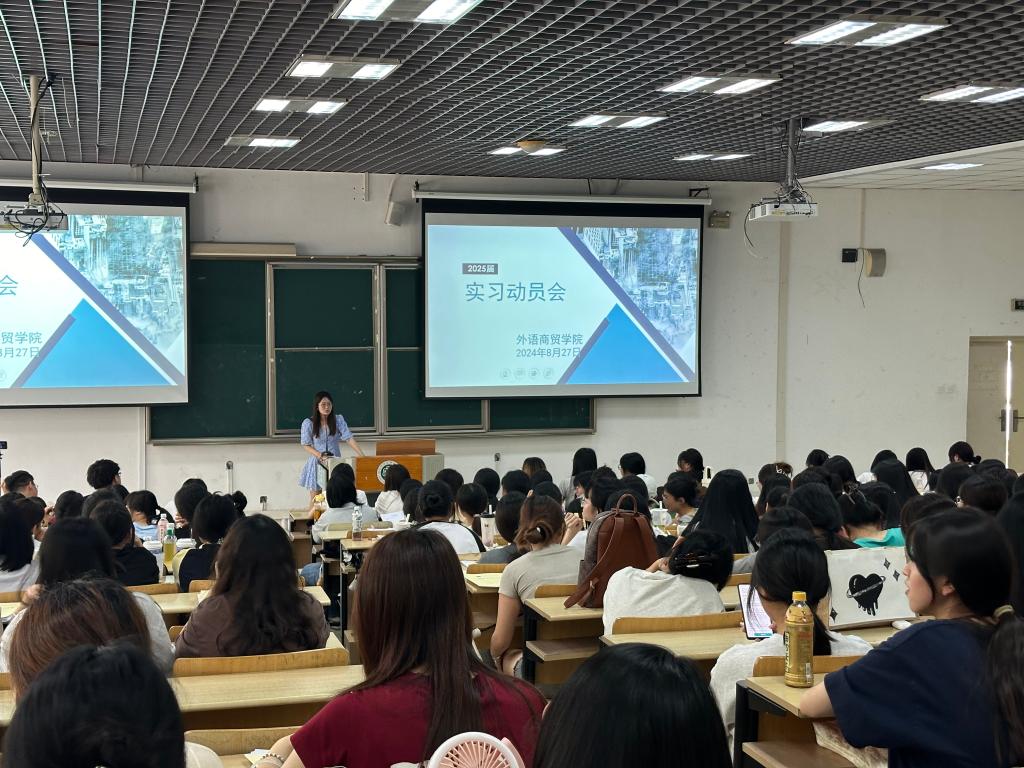 为顺利推进2025届毕业生实习工作,确保每位同学能够安全、有序地踏上实习岗位,2024年8月27日,外语商贸学院商贸教研室、应用外语教研室分别于教学楼1018和1014教室召开2025届毕业生实习动员大会。学院党总支副书记卢燕红副院长陈海燕、教研室主任、实习指导教师、辅导员及全体2025届非师范毕业生共同参与本次动员会。