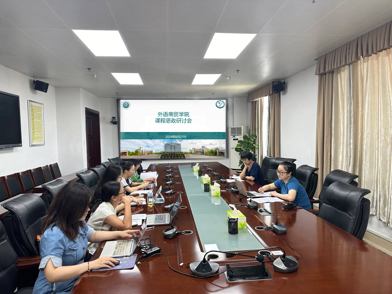 为了深化教师团队课程思政的理解与实践,提升教学质量,确保立德树人根本任务的落实,2024年8月27日上午,外语商贸学院院长何少娴、副院长陈海燕及全体教研室主任于综合楼九楼会议室举行课程思政建设研讨会。