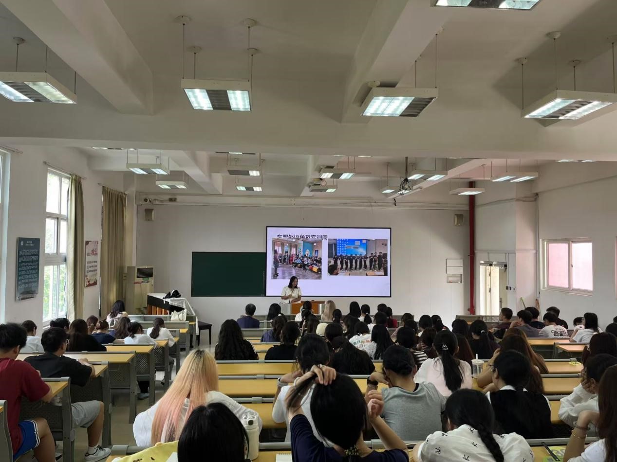 应用外语教研室金曦老师、郑美玲老师、李绍梅老师和林超老师以独特的教学风格和丰富的教学经验,向同学们充分展示了名师风采。紧接着为同学们介绍应用外语专业的培养体系与特色优势、培养目标与规格要求、就业方向与发展前景。最后为同学们详细阐述如何学好本专业的基本方法,以及在学习过程中的注意事项和宝贵建议。