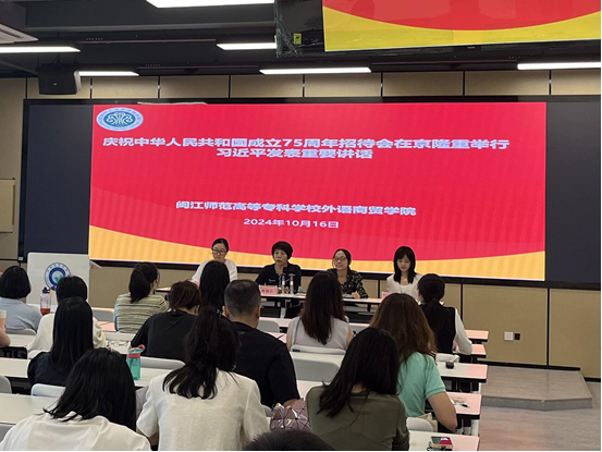 2024年10月16日下午,外语商贸学院于产创楼307多功能报告厅举行学院会议。学院党总支书记林锦芯、副书记卢燕红、副院长陈海燕、副院长刘诗雨以及全体教职工出席会议。会议由刘诗雨副院长主持。