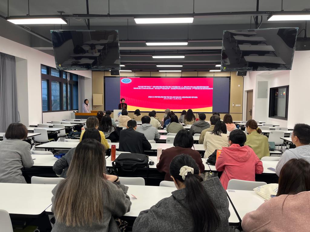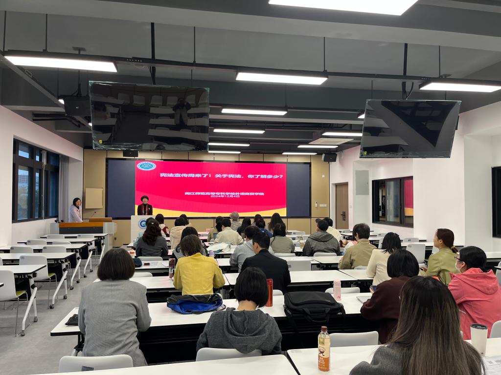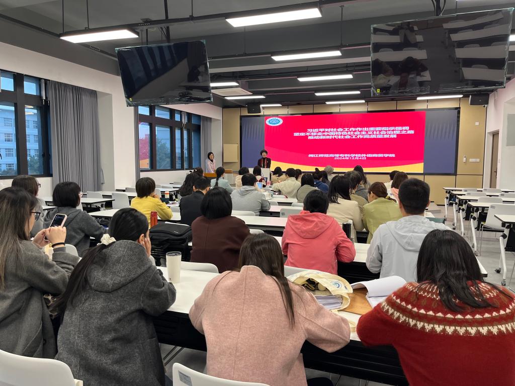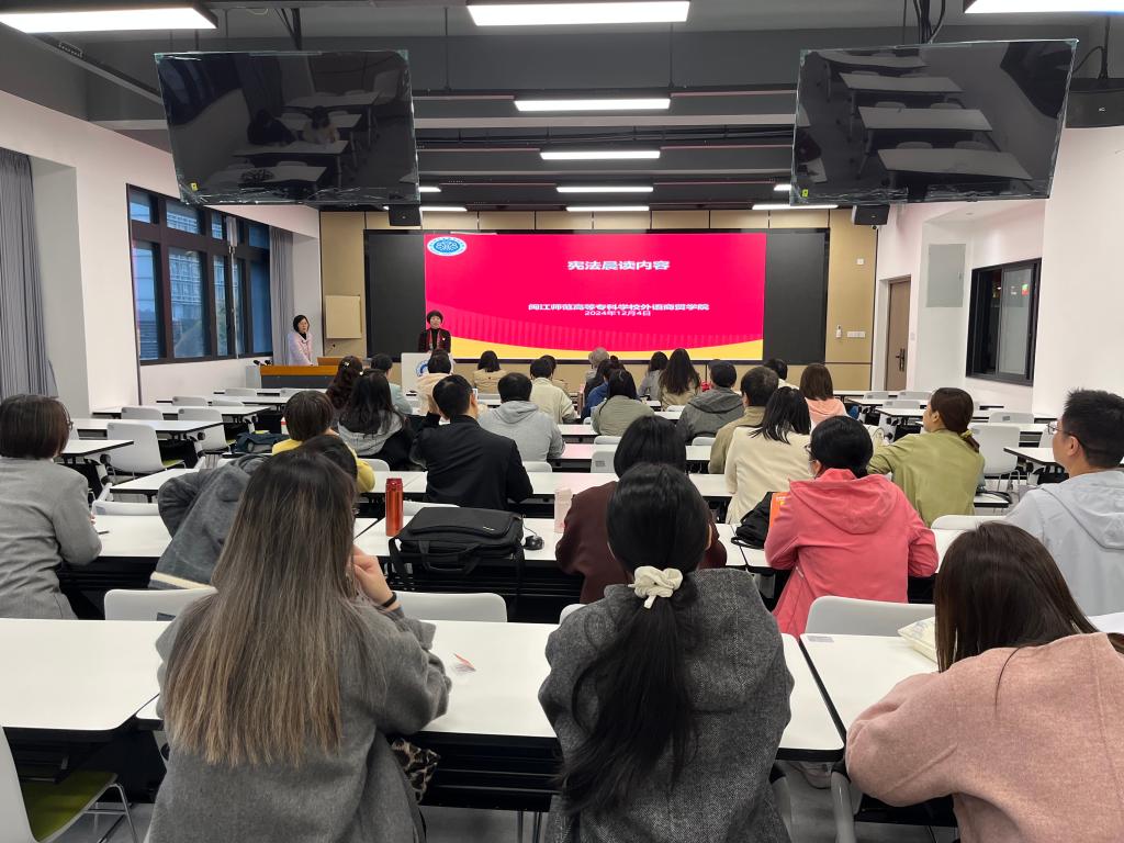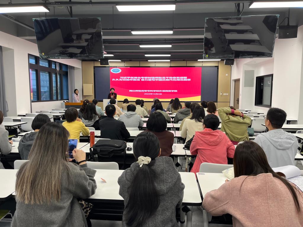 2024年12月4日下午,外语商贸学院在产创楼307多功能报告厅组织12月全体教职工理论学习会议,党总支书记林锦芯、院长何少娴、副书记卢燕红、副院长陈海燕、刘诗雨及全院教职工参会。会议由何少娴院长主持。