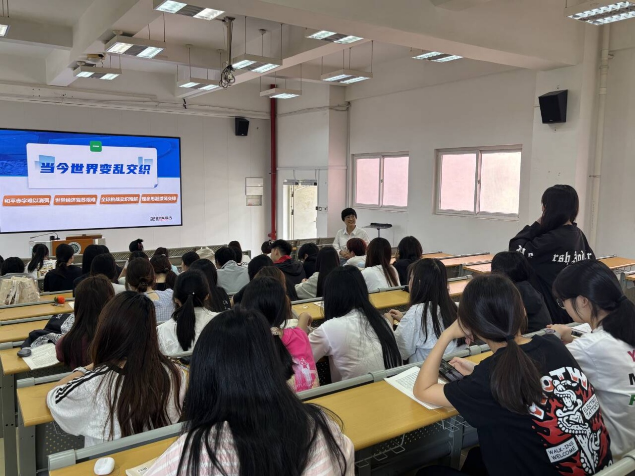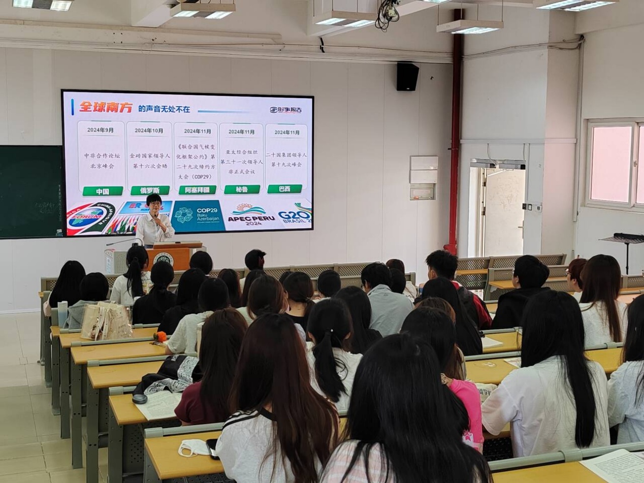 在国际舞台风云变化之际,谱写全球南方团结合作新篇章,不仅关乎世界格局的重塑,更与每一位大学生的未来紧密相连。为让大学生更加深入了解全球南方合作的内涵与意义,外语商贸学院何少娴院长于2025年4月29日在2014教室为23国际经济与贸易1班全体同学开展以“谱写全球南方团结合作新篇章”为主题的形势与政策课。