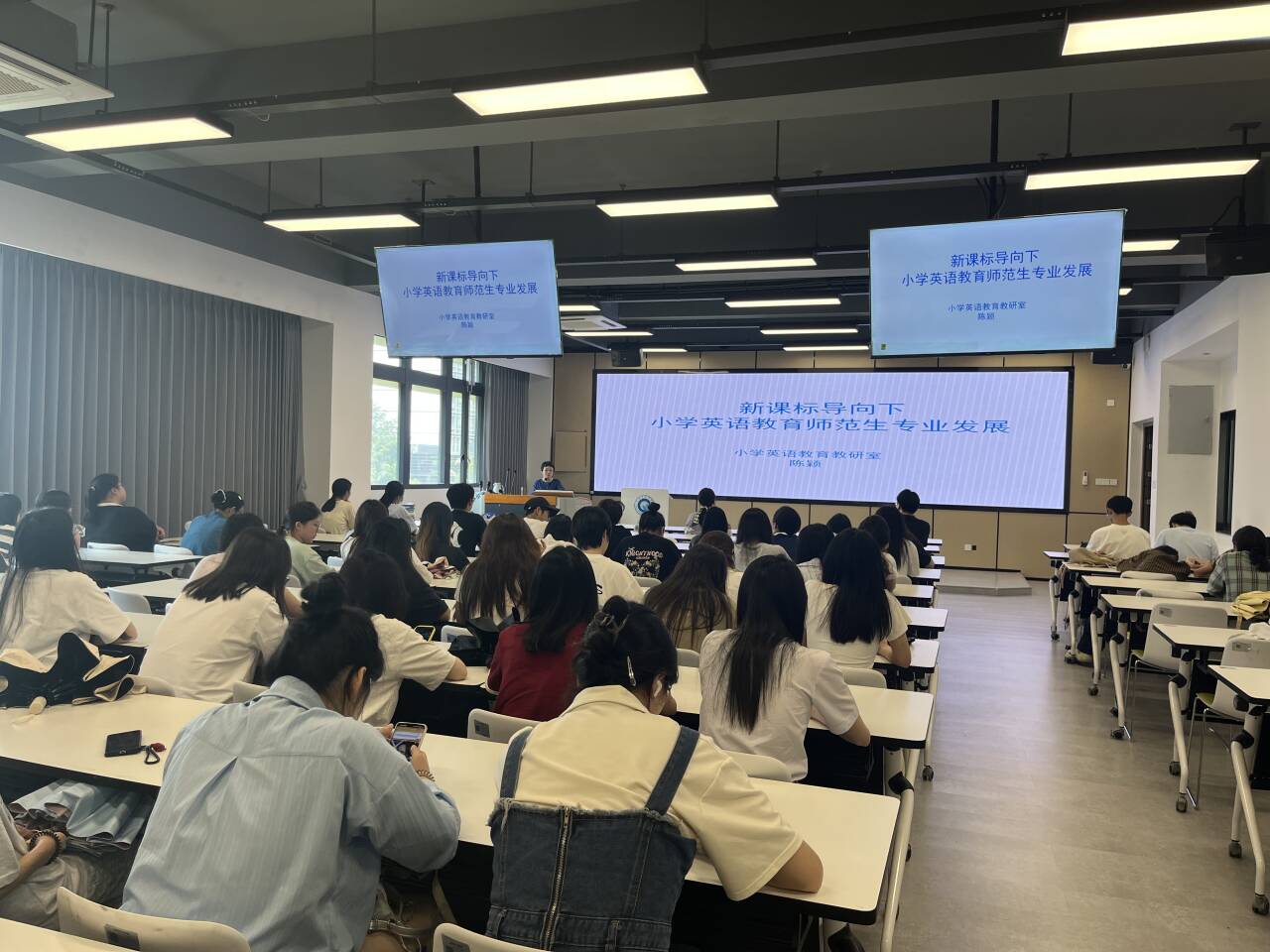讲座中,陈颖老师以《义务教育英语课程标准》的核心素养导向为引领,为同学们讲解了新课标新课改对英语教育人才的新要求,鼓励同学们提升语言能力以及学科教学能力,更新教学理念,促进人文素养的发展,在新形势下的教育岗位竞争中脱颖而出,为小学英语教育行业注入新生力量。