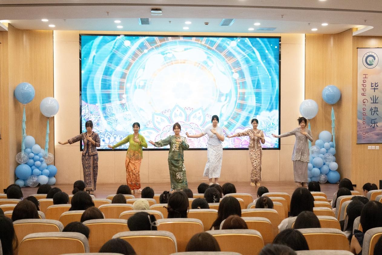 当《娘惹舞》的旋律响起,舞者们身着传统娘惹服饰,随着步伐摇曳出细碎银光,展现出学院小语种专业的魅力。
