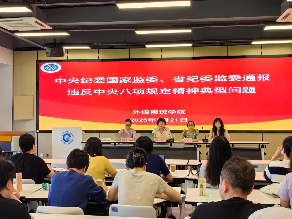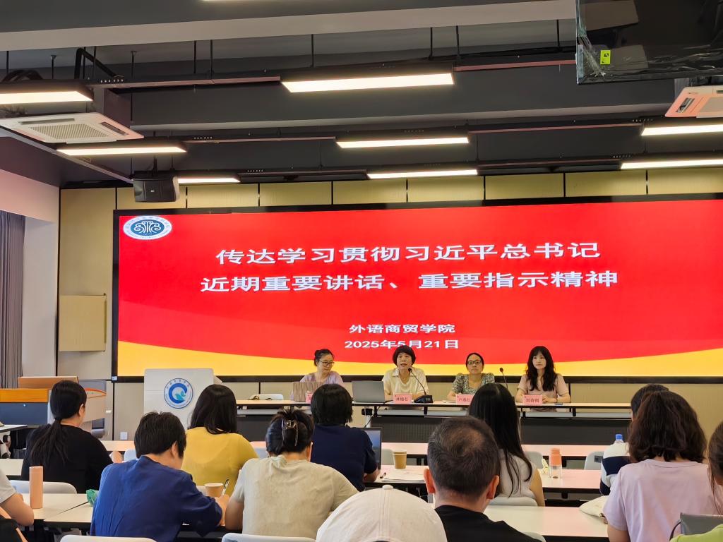 2025年5月21日下午,外语商贸学院于产创楼307多功能报告厅召开全院教职工会议。学院党总支书记林锦芯、院长何少娴、副书记卢燕红、副院长陈海燕、副院长刘诗雨及全体教职工参会。会议由刘诗雨副院长主持。