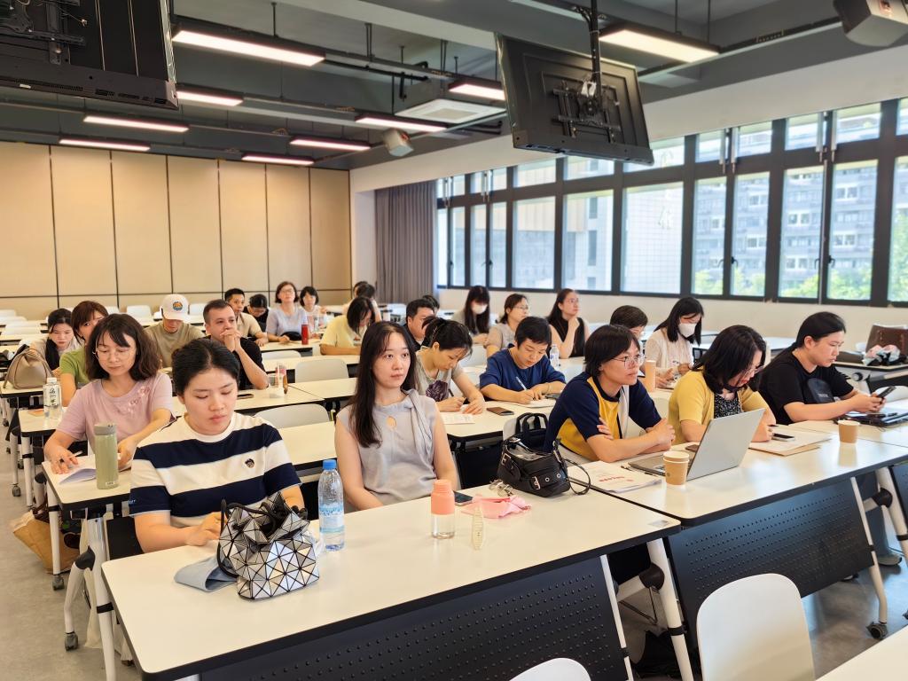 2025年6月26日下午,外语商贸学院于产创楼307多功能报告厅召开全院教职工会议。学院党总支书记林锦芯、副书记卢燕红、副院长陈海燕、副院长刘诗雨及全体教职工参会。会议由刘诗雨副院长主持。