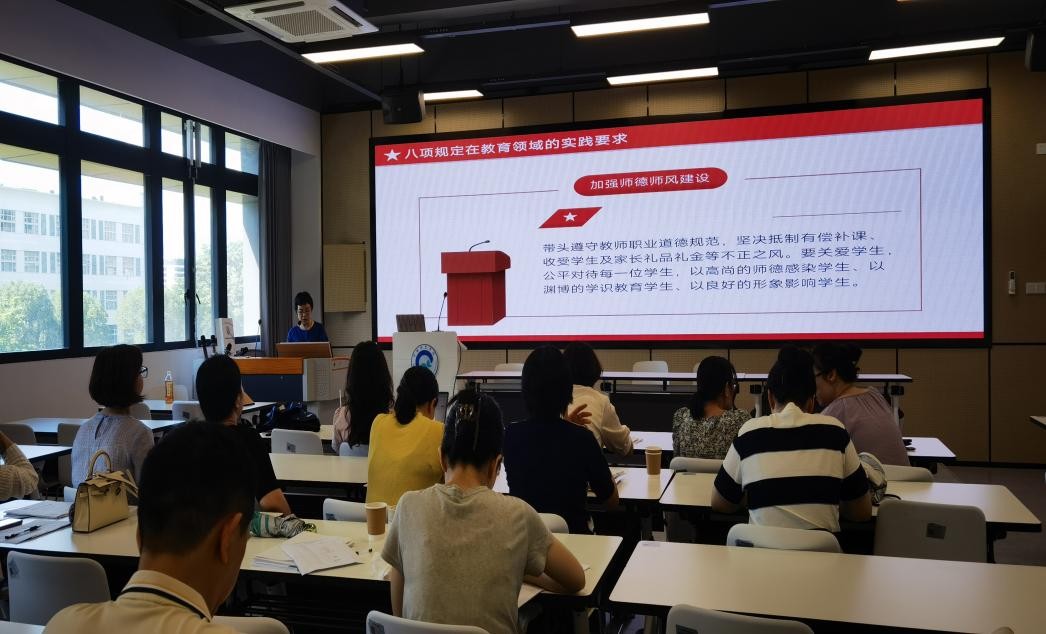 为深入推进作风建设,强化教师党员责任担当,6月26日,外语商贸学院教师支部书记陈颖以“深入贯彻落实中央八项规定精神,锻造新时代教师队伍新风貌”为题,为支部党员教师带来一堂主题鲜明、内涵丰富的党课。