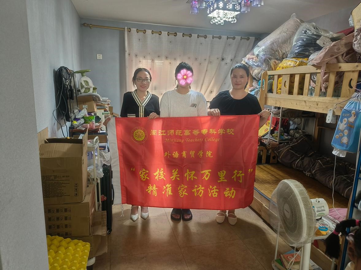 为进一步贯彻落实国家及全省资助工作“精准资助”、“资助育人”的工作要求,加强家校沟通,全面了解和掌握特殊群体学生及其家庭的实际情况,增强思想教育和帮扶工作的针对性与实效性,2025年6月27日,外语商贸学院党总支书记林锦芯、党总支副书记卢燕红分别带队,与辅导员练栅栅、占婷前往连江等地开展“家校关怀万里行”精准家访活动。