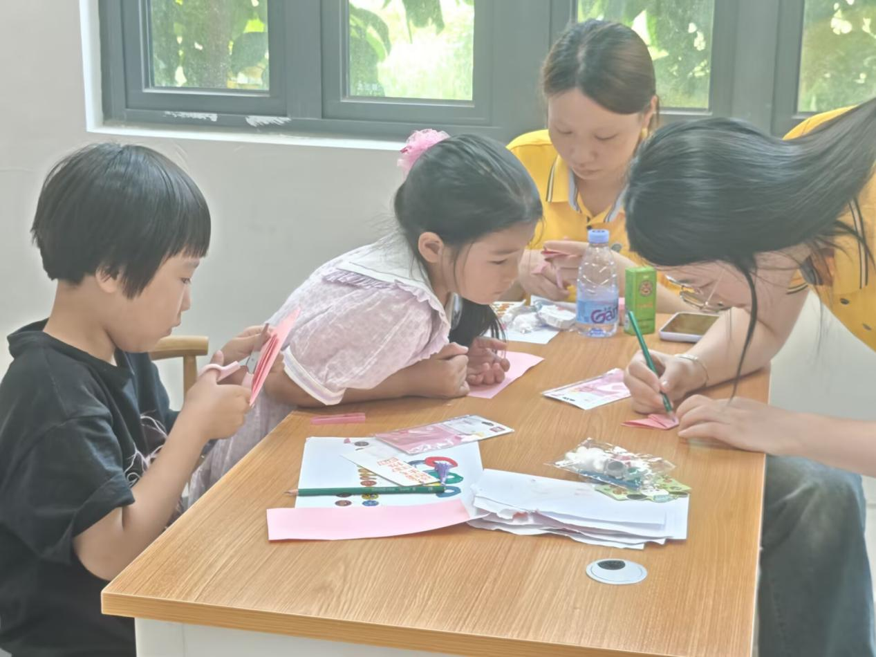 志愿者将英语与民俗融合,用双语讲解春节习俗、讲述年俗故事,安排剪纸活动。孩子们在制作春节灯笼、剪纸过程中,同步学习相关英语表达,让民俗温情与知识学习相互赋能。