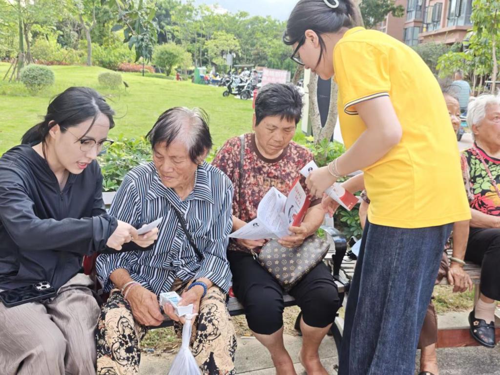 李雨晴老师带领志愿者走进社区,详细介绍国家及学校资助政策,涵盖资助对象、申请流程、补助标准等内容,耐心解答家长疑问,传递政策关怀,助力有需要的家庭了解教育资助福利,并受益于国家的关怀。