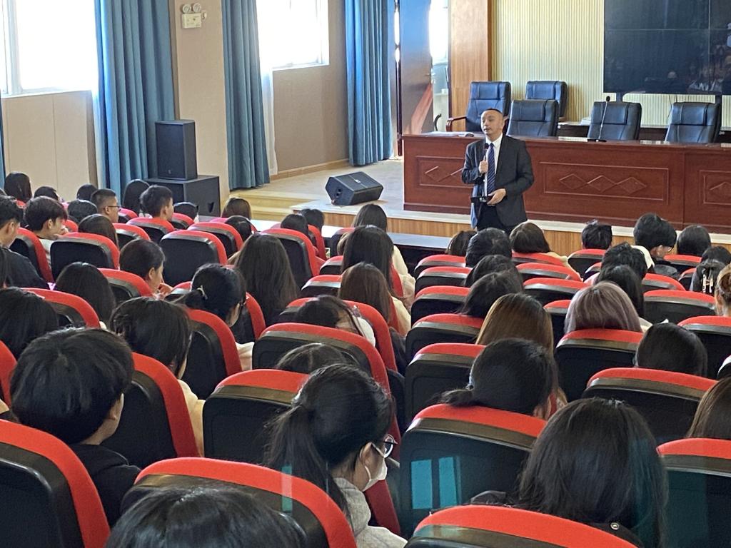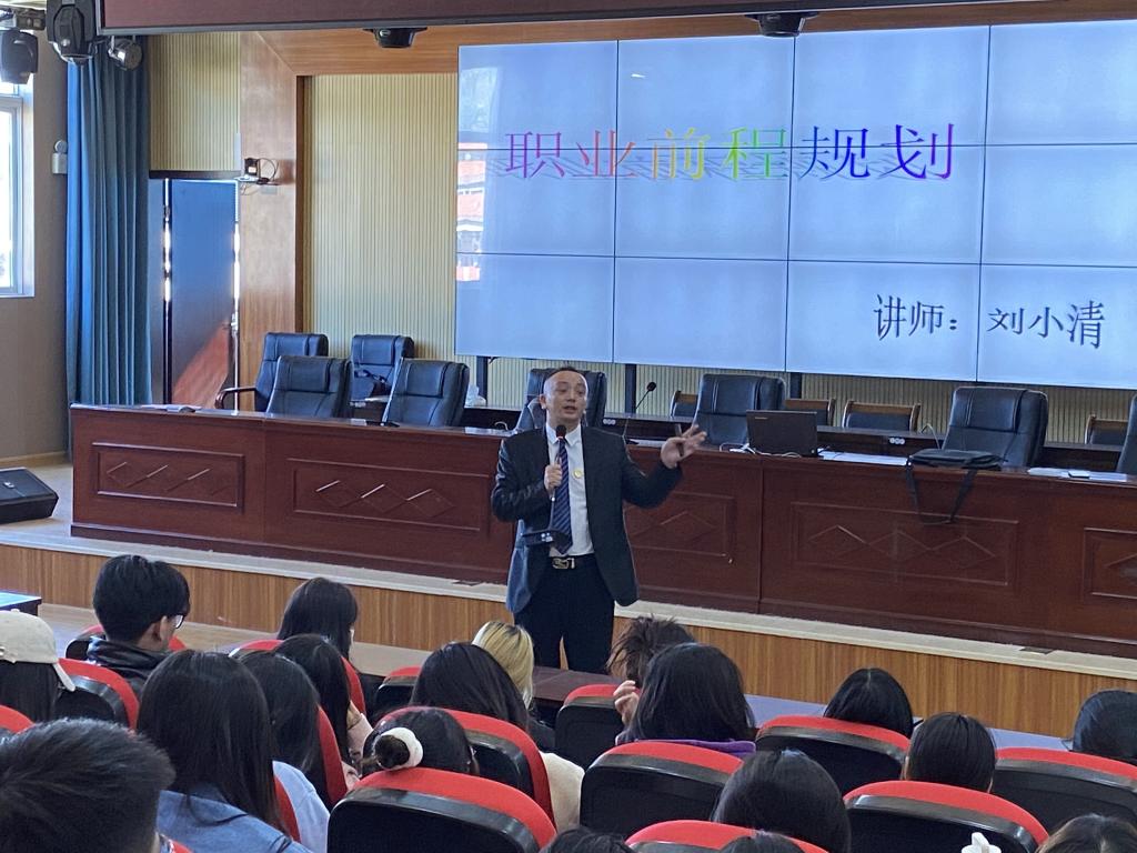 为了加深新生对职业以及对自我的认知,对自己的职业生涯有初步的规划,2021年12月1日商贸教研室邀请福州市海狮育才融浩人力资源有限公司总经理、外语系创业导师刘小清先生为21级应用英语专业、国际经济与贸易专业和跨境电子商务专业的新生做了题为“职业前程规划”的专业认知讲座。