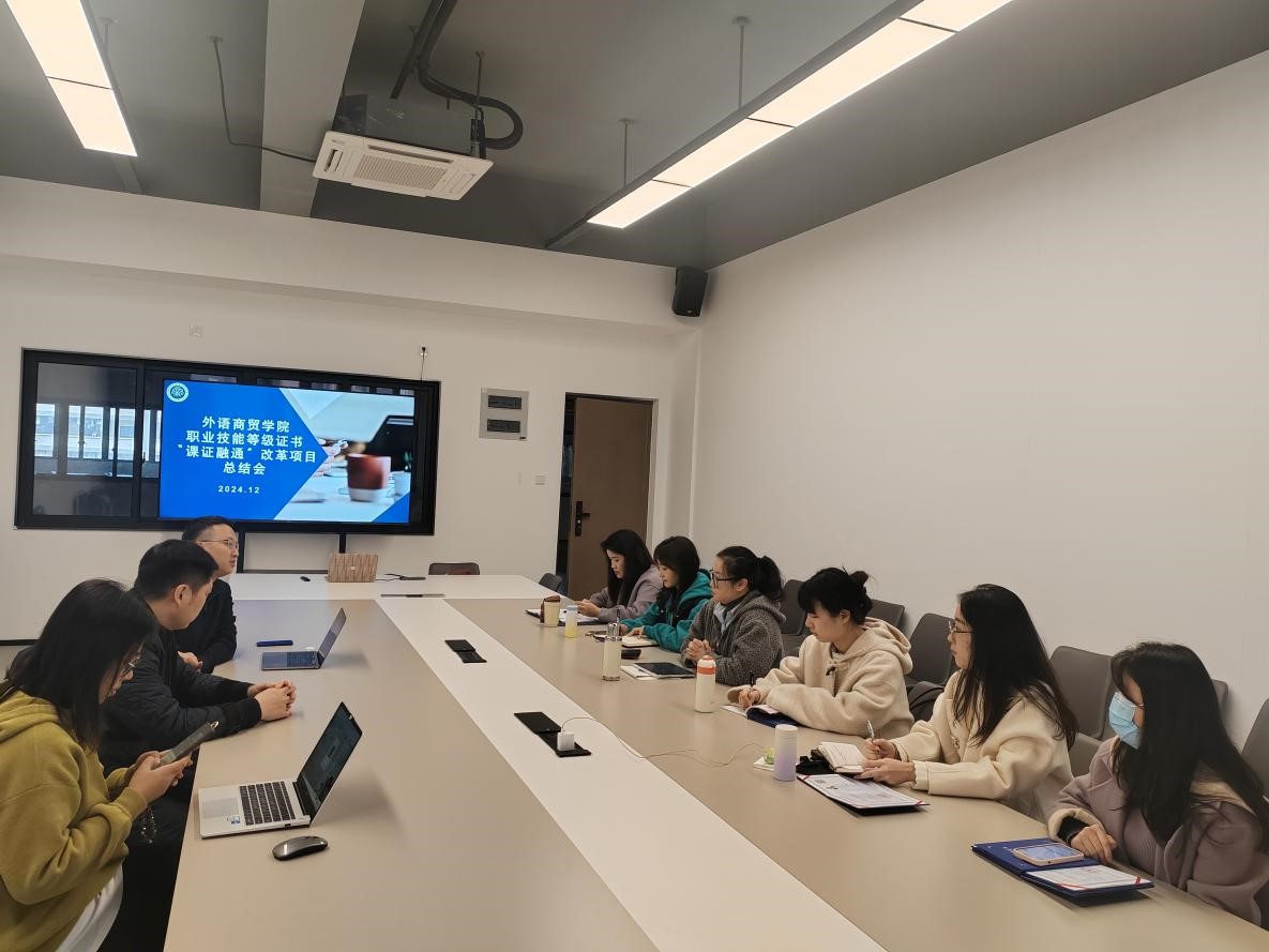 为深入推进职业技能教育的创新与发展,外语商贸学院自2024年7月份以来开展”互联网营销师”与“全媒体运营师”相结合的“课证融通”改革项目。2024年12月25日下午,在产创楼303召开职业技能等级证书“课证融通”改革项目总结会。会议由学院副院长陈海燕主持,改革项目组全体成员参会。