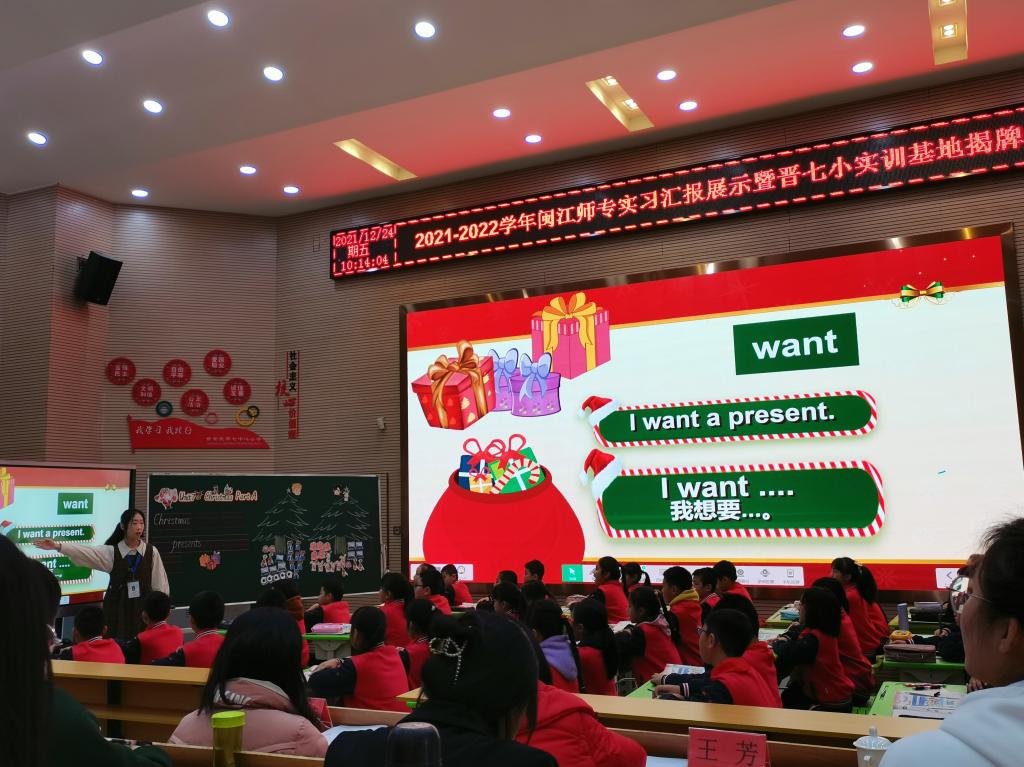 12月24日上午,19英教2班实习生张雨晨在福州市鳝溪小学(晋七小)四年6班执教了一堂英语汇报课,执教内容为闽教版四年级上册Unit7 Christmas Part A。